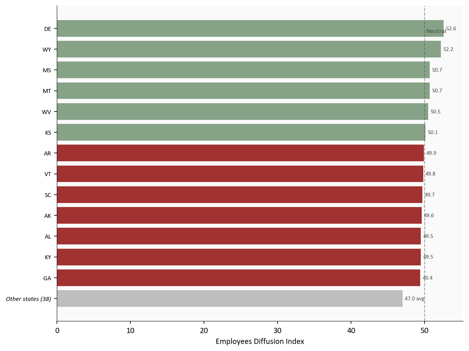 3. State-Level Hiring: Broad Weakness, Few Bright Spots